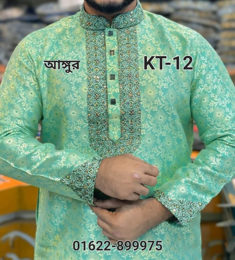কাতান কাপড়ের স্টাইলিশ পার্টি পাঞ্জাবী=KT-12 (আঙ্গুর)