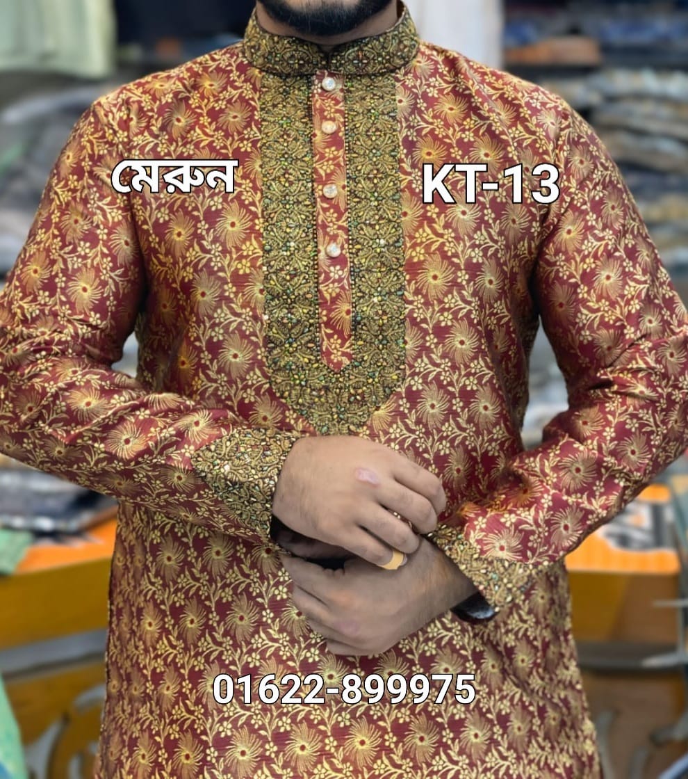 কাতান কাপড়ের স্টাইলিশ পার্টি পাঞ্জাবী=KT-13 (মেরুন)