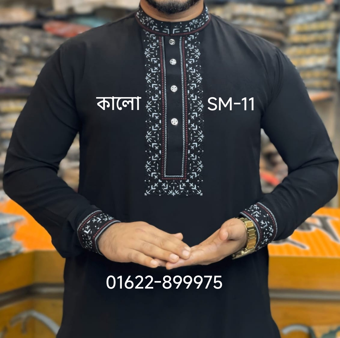 স্টাইলিশ কফ হাতা পাঞ্জাবী= SM-11 (কালো)
