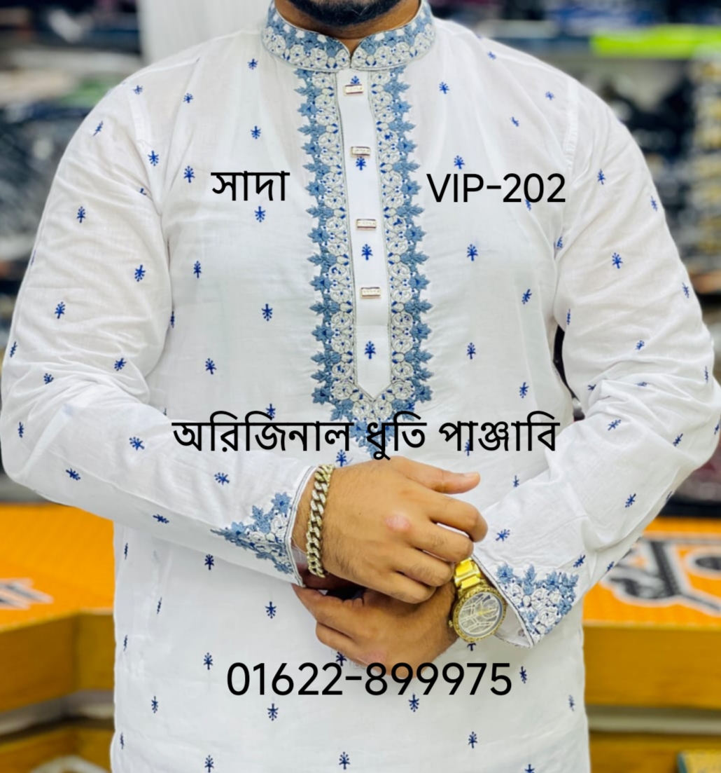 1490/- টাকায় পাতলা ধুতি পাঞ্জাবি=VIP-202 (সাদা)